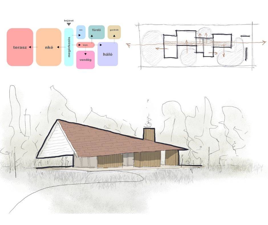 The concept of the house was born from an exploration of the heritage of Őriszentpéter. The design of the house’s spaces reflects the traditional “szer“s (small settlements) of the region. The number of spaces corresponds to the number of these former settlements, and the hierarchy of the spaces mirrors the social connections of the “szer”s of the area. Additionally, the house has elements of local folk art, such as the plant motifs above the terrace, which are believed to bring good luck to the owners of the house.